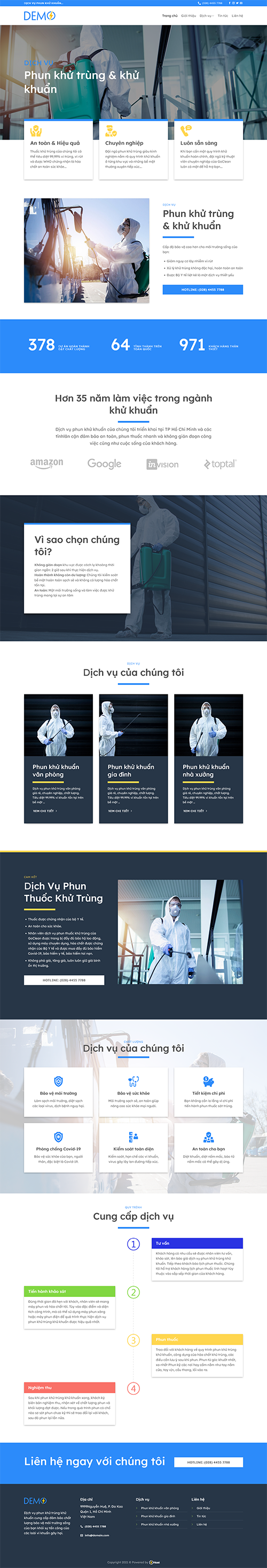 Mẫu website, mẫu giao diện dành cho dịch vụ phun khử khuẩn, vệ sinh, khử khuẩn, giới thiệu công ty,…